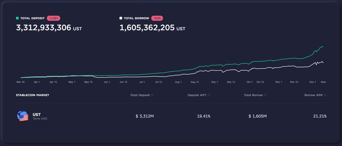 Taking the total $UST deposits in Anchor of $3.312 billion earning 19.45% APY, @anchor_protocol will need to pay its depositors a total of $644 million $UST per annum.