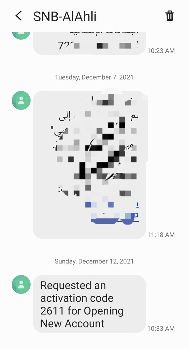 4- وطالب منهم إنه يفتح حساب عندهم وعطاهم رقم جوالي باعتبار إنه جواله فأرسل البنك لي رسالة فيها رقم سري