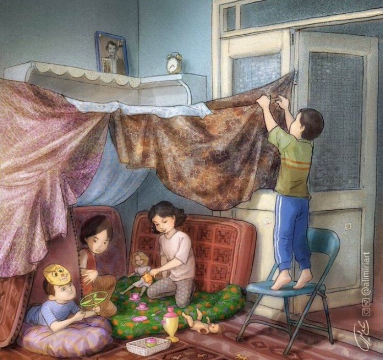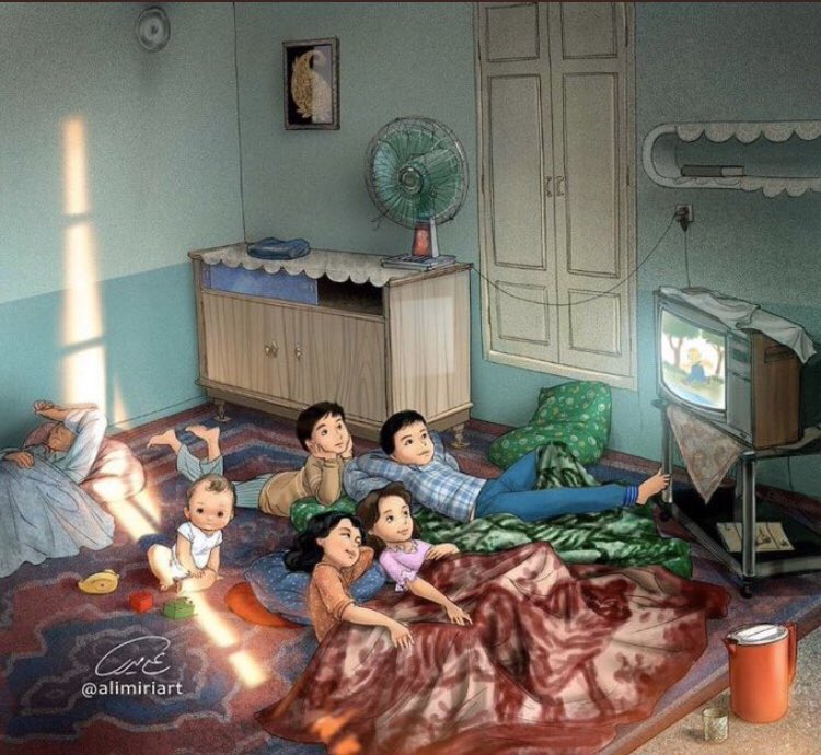 ثريد | ثريدي اليوم مختلف عن ثريداتي المعتادة ، لفتت انتباهي رسومات جميلة للرسام الإيراني "علي ميري" تصوّر الحياة قبل الإنترنت ، و سأعرضها هنا لجمالها ودقّتها وأظنّ أنّ كلّ منا سيشاهد نفسه في هذه الصور