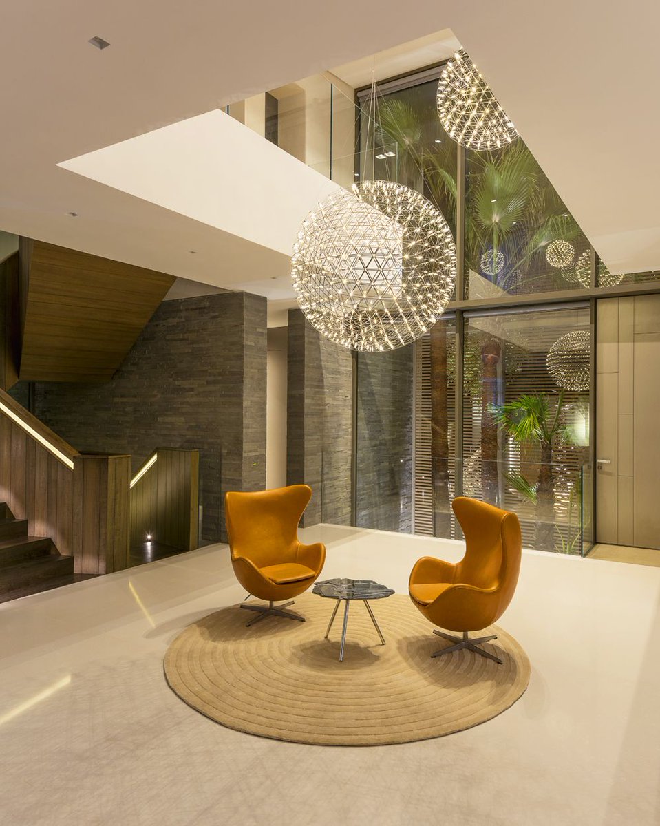 ومنطقة المدخل بارتفاع مضاعف و انارة هادئة وكافية
