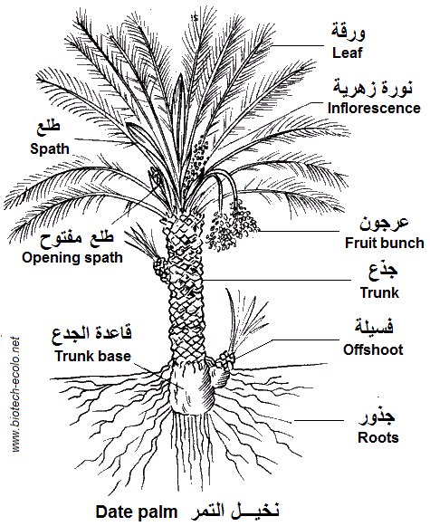 جذع شجرة النخيل Palm trunk يمكن اعتباره صفة بنيوية لتمييز الاصناف و يتضمن اصنافاً بجذوع رفيعة نصف قطرها 40-50 سم مثل اللولو و اخرى متوسطة بجذوع نصف قطرها 50-70 سم كالصقعي و المكتوم و هناك الغليظة الجذع بنصف قطر اكثر من 70 سم كالبرحي و تحت كل منها تندرج لائحة طويلة من الاصناف 🤦‍♂️.