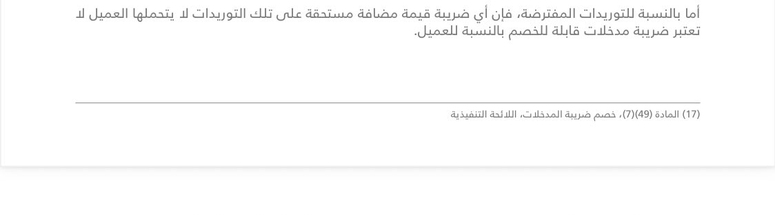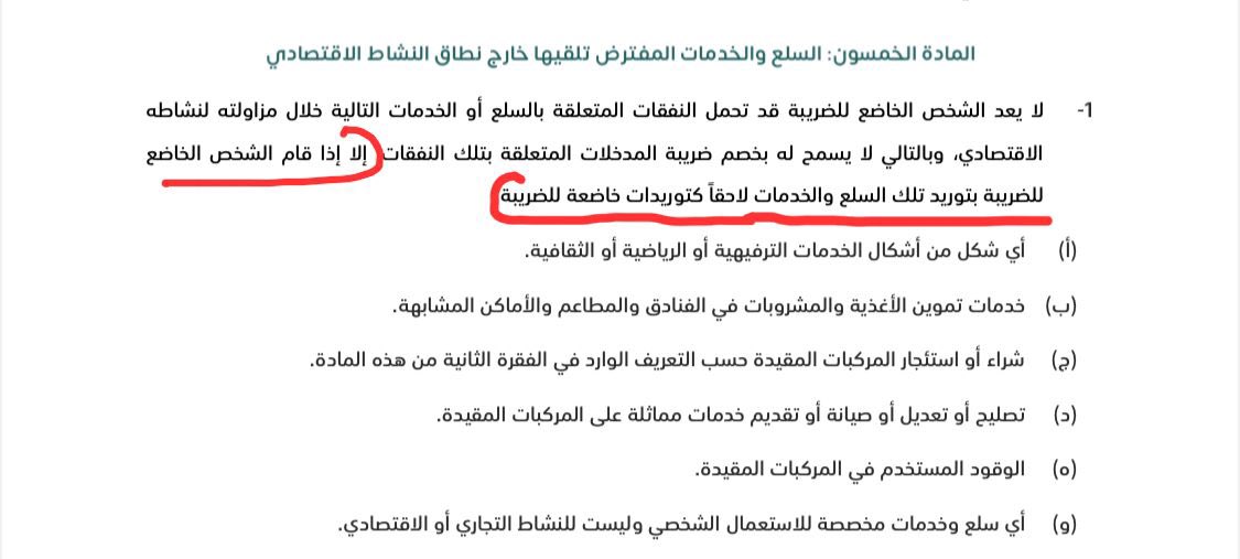 وكذلك هذه الحالة لا تعد استثناء من توريد المفترض حسب المادة 15 فقرة 9 من اللائحة التنفيذية⬅️لابد أن يتم تحمل #ضريبة_القيمة_المضافة & ثم لايتم خصمها بإرادة الخاضع للضريبة.