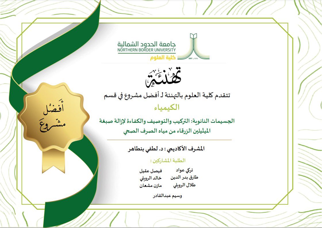 المشروع الفائز هو مشروع الطالبات: منيرة زايد العنزي، أماني حمدان العنزي، شوق عوّاد العتيبي، طيف فرحان الحازمي، فوزية ضاحي الحازمي، وعائشة صالح الحازمي، بإشراف الدكتورة أسماء جزاء العنزي.