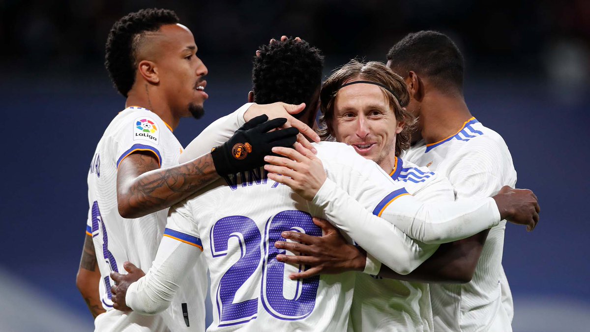 بيمناه، وجاء الشوط الثاني من العرض الرائع للوحات الإسبانية ولم تمر سوى سبع دقائق ليشتعل متحف "سانتياغو برنابيو" بلوحة فنية بلمسات بين بنزيما وڤينيسيوس لتصل للبرازيلي ليضع هدفه الحادي عشر والأروع بينهم، وخلال عشر دقائق أضاف ڤيني اللوحة الثالثة وهدفه الثاني برأسية رائعة لعرضية ،،
