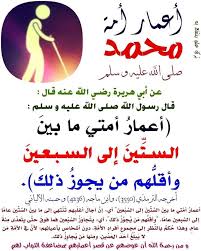 «أعمار أمّتي ما بين الستين إلى السبعين،وأقَلّهم من يجُوز ذلك».