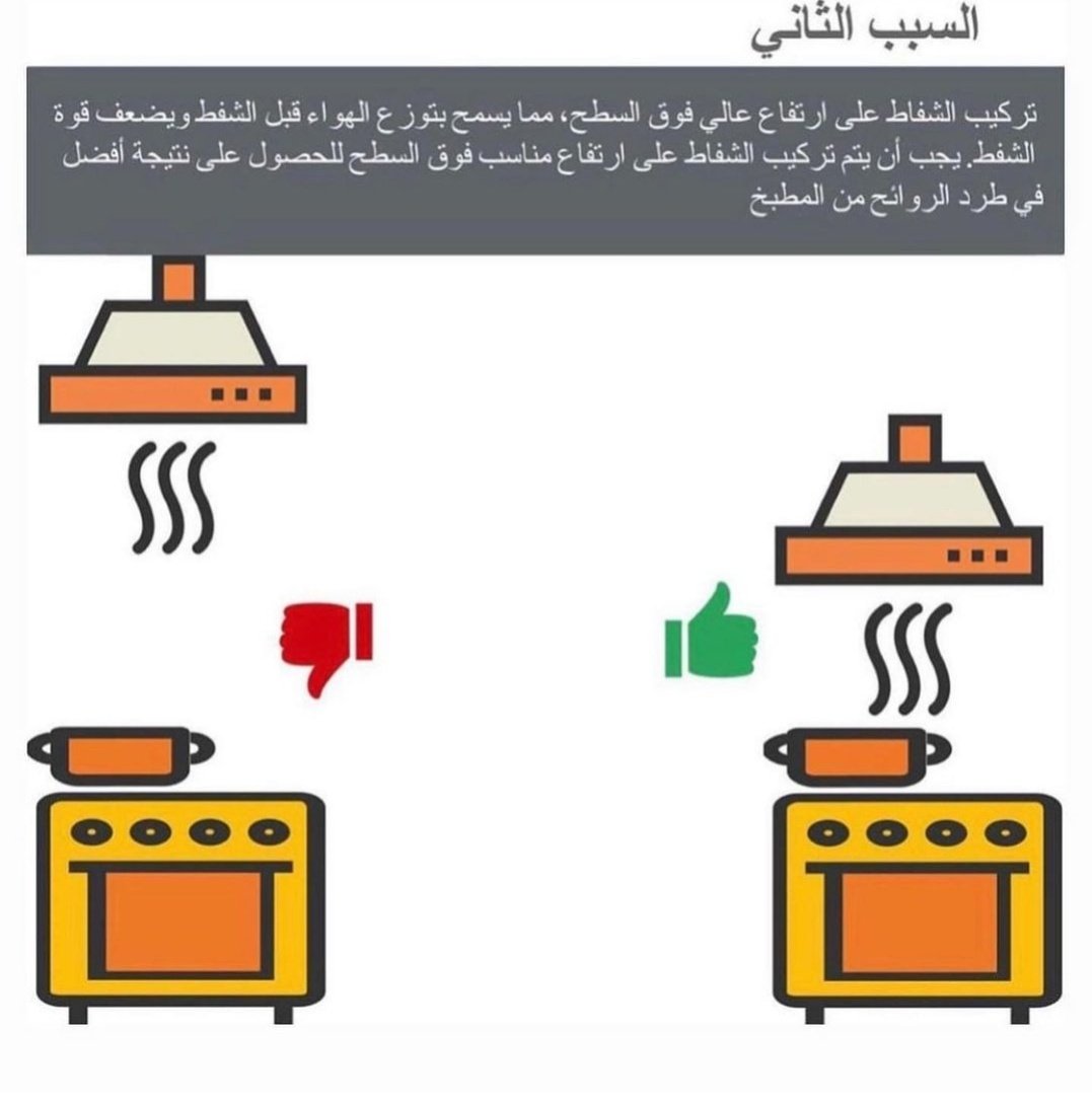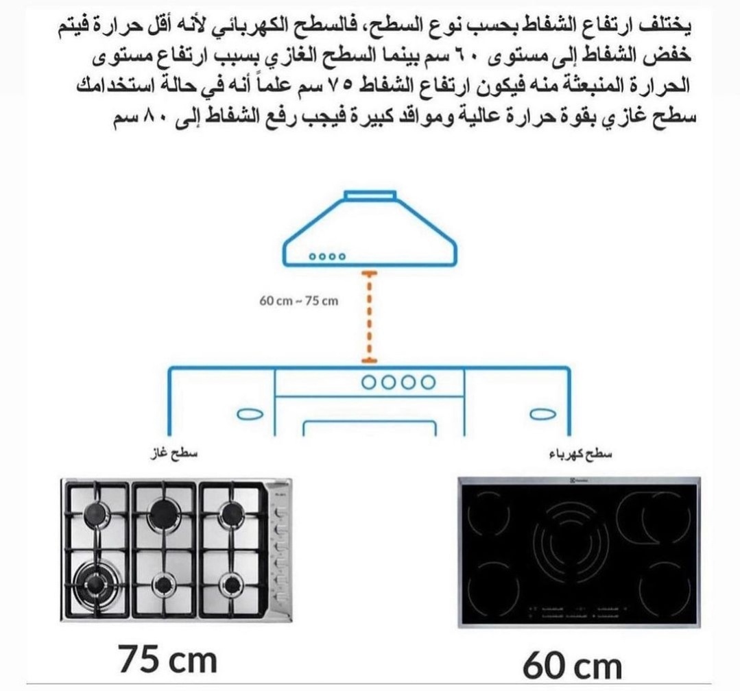 الحل : وهنا المقاسات المناسبة لارتفاع الشفاط بحسب نوع الغاز 👌♦️