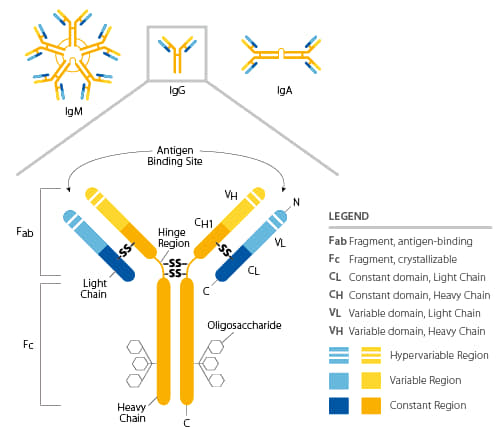 (سلسلة ثقيلة ، نطاق متغير ) وبذلك تشكل المجالات الثابتة للسلاسل الثقيلة منطقة FC من الجسم المضاد .