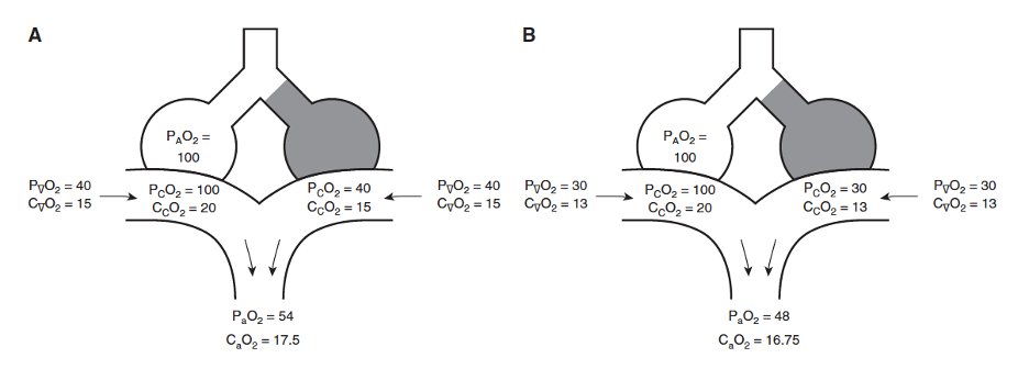 💡⬆️blood flow through low V/Q & shunt units worsens gas exchange