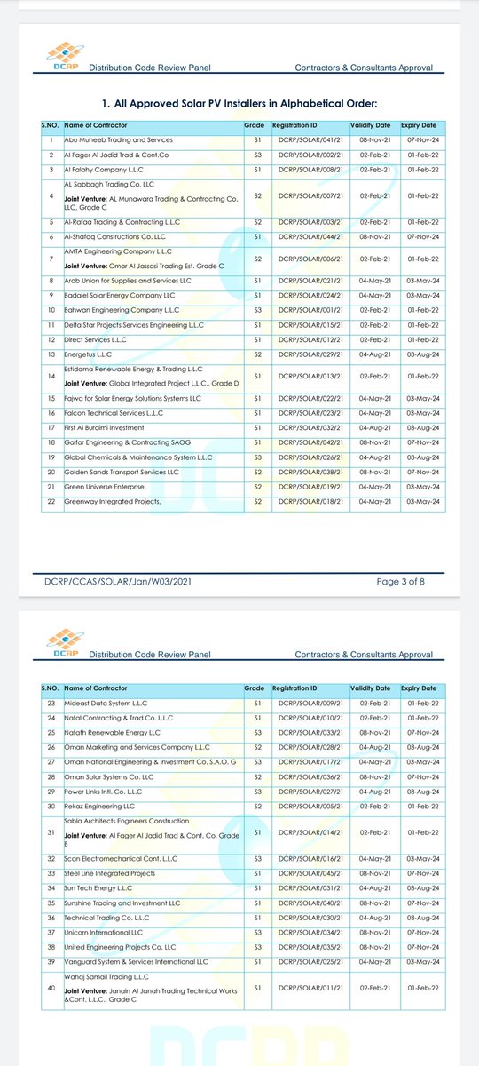 0️⃣5️⃣الشركات المعتمدة لتركيب انظمة الطاقة الشمسية المتصل بالشبكة الكهربائية في السلطنة.