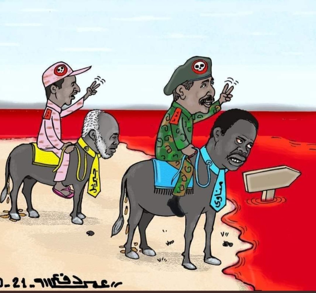 والزعماء الذين وقعوا عليها حتى ظن الجميع سؤا بالمدنيين شركاء الحكومة الانتقالية حتى بدأت الأمور تتكشف رويدا رويدا تصريحات مشاترة من الزعماء الموقعين تأجيل زيارة المعسكرات