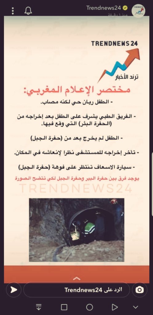 الملفت أن #الحكومة_المغربية أرادت سيناريوا إنقاذ بطولي ولم تنجح لتأخرهم، بسبب ضعف إمكانات التكنولوجيا.