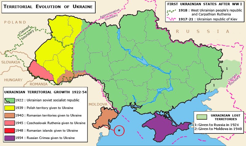من أهم ما مرت به اوكرانيا كان فترة منح روسيا جزيرة القرم كبادرة حسن نية الى اوكرانيا ضمن الأخوة السوفييتية عام 1955