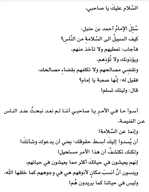 السلام على قلبك وروحك وضميرك وفطرتك وإيمانك