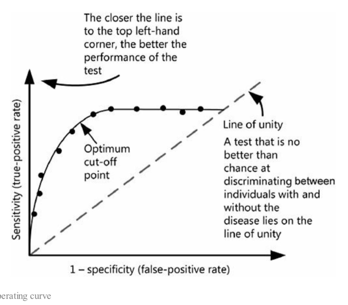 مثال حصلنا على AUC =0.80 معناها the test is able to correctly discriminate positive and negative results with a probability of 0.80