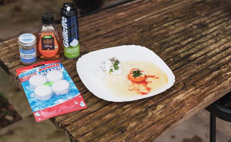 وبعض الصور لأطباق شهية للغاية ومصنوعة من مواد غير قابلة للأكل مثل أقراص المنظفات والدهانات وحتى أقدام بشرية