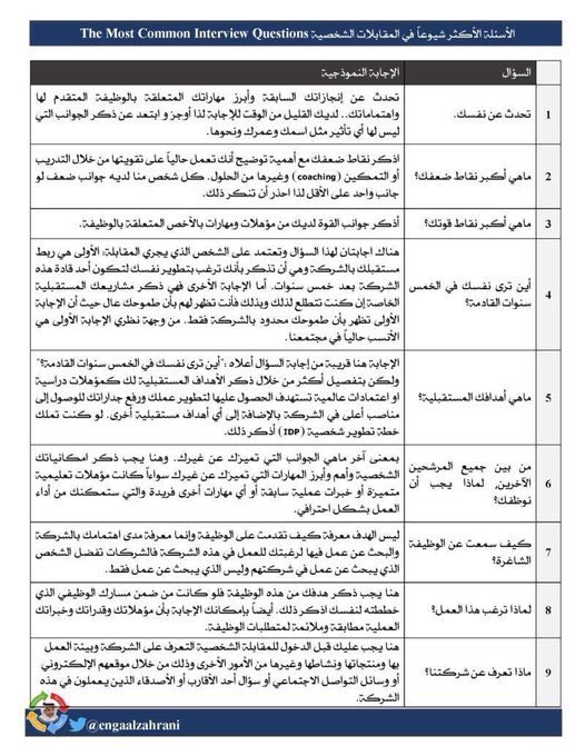 ٤- جهز نفسك على حسب المسمى الوظيفي للمقابله من ناحيه المعلومات