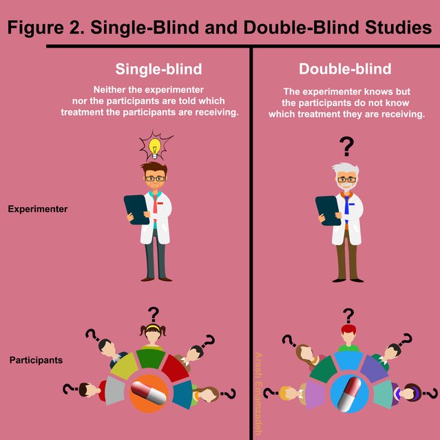 1️⃣مجموعة العلاج treatment group ومجموعة ضابطة control group . تتلقى مجموعة العلاج علاجًا تجريبيًا.