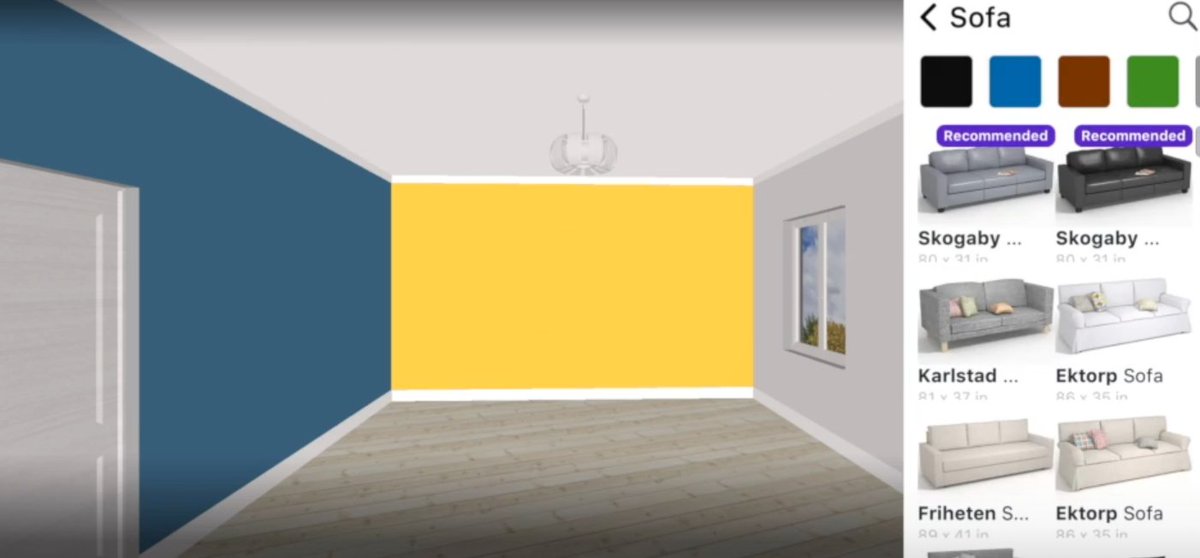 ويسار الشاشة خيارات الأثاث والغرفة