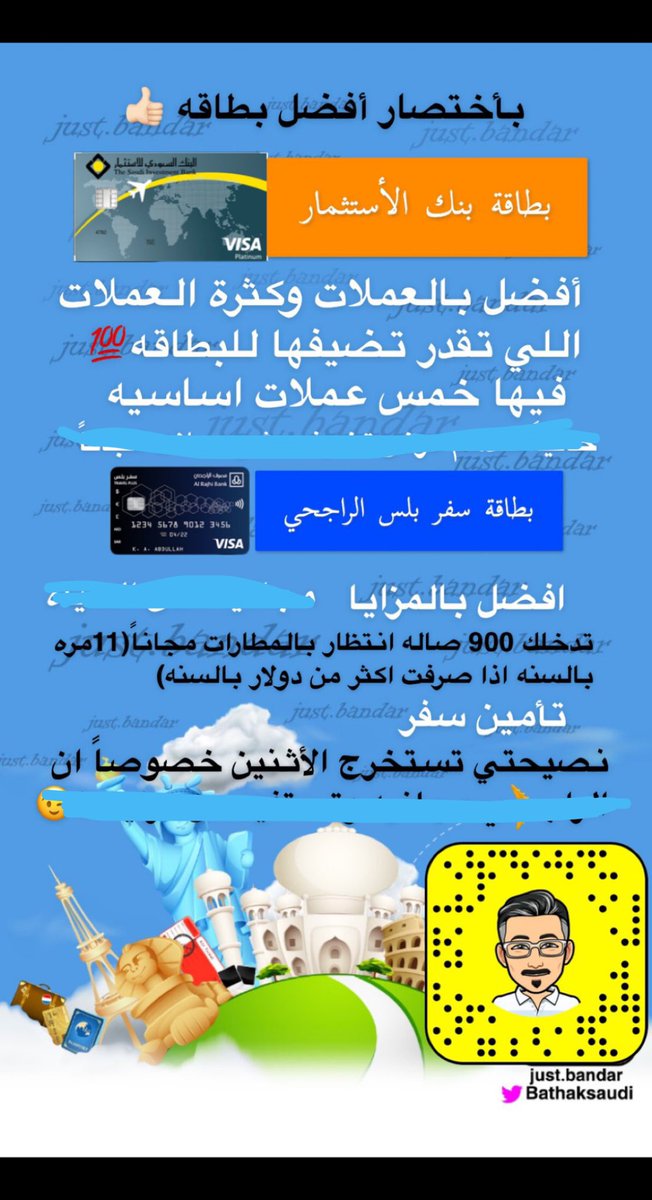 تحت التغريده مقارنه لأشهر بطاقات السفر من البنوك الأخرى