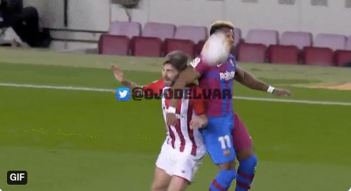 دفع بكلتا اليدين على لاعب #بلباو في منطقة الجزاء