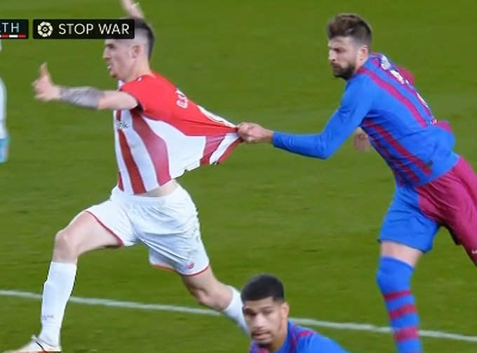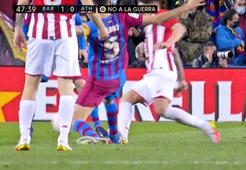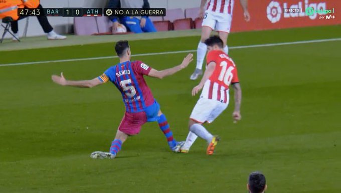 التغاضي عن طرد او انذار بوسكتش لاعب #برشلونة بعد الدعس على كاحل لاعب بلباو بدون المنافسة على الكرة