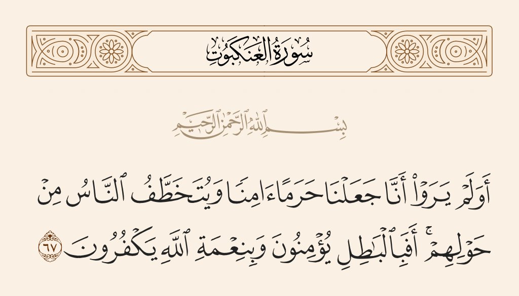 3/وختَمَت السورة المُباركة #سورة_العنكبوت بذِكر مثالين من الاختبارات والابتلاءات وذلك في الآيات من 65 إلى 67 👇
