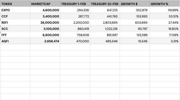 1. Some protocols have already paid off distributions and dividends. The treasury might not reflect their true value.