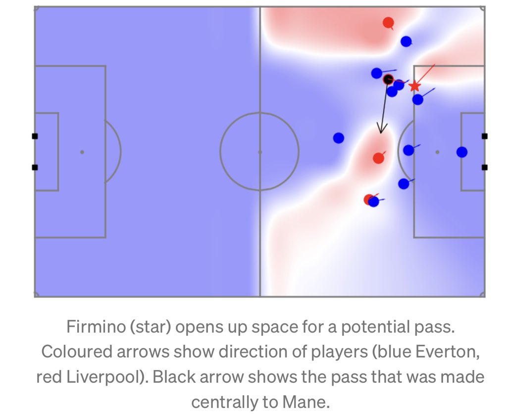 لا يوجد شيء استثنائي في هذا التحرك إنه مجرد مثال مباشر لشيء يفعله فيرمينو باستمرار يبحث دائمًا عن طرق لفتح مساحة داخل البوكس بتحركاته أحيانًا يحصل على الكرة ، وأحيانًا اكثر يسهل ايصال الكرة لزملاءه.. ولكن في كلتا الحالتين تكون الحركة مستمرة والدفاع مشتت