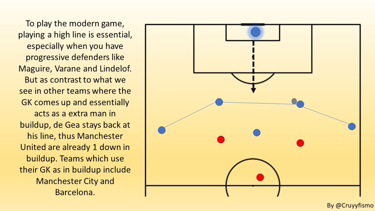 اولا قبل كل شي..الحارس الان لازم عنده القدره يلعب بالقدم ويحافظ على استحواذ الفريق، لازم عنده المقومات والخصائص بأنه يخرج من منطقته ويكون حامي للدفاع، ويكون sweeper ومدافع ساقط خلف مدافعي فريقه