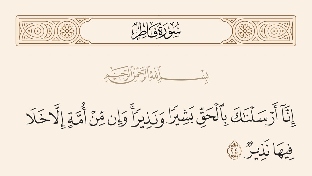 14/👈رابعاً: ما مِن أمّة من الأمم عبر التاريخ من لدُن آدم عليه السلام إلى أمتنا على نبيّها الصلاة والسلام..إلا وأرسل الله سبحانه وتعالى رُسُل وأنبياء كما قال سبحانه وتعالى ((..... وإنْ من أُمّة إلا خَلا فيها نَذير)) 👇