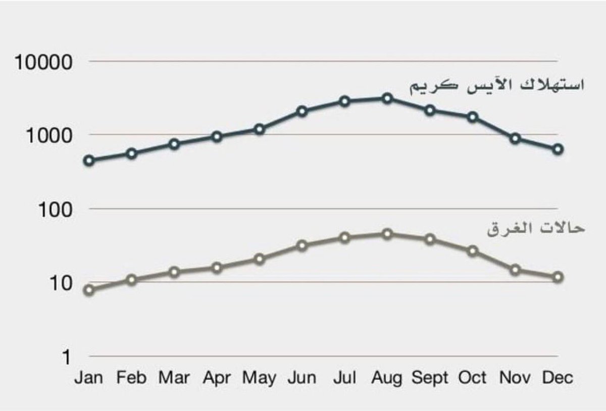 لو فكرنا شوي بالموضوع ممكن نفهم أنه في عامل معين يؤدى إلى ارتفاع استهلاك الايس كريم ويؤدى فى الوقت ذاته الى ارتفاع حوادث الغرق