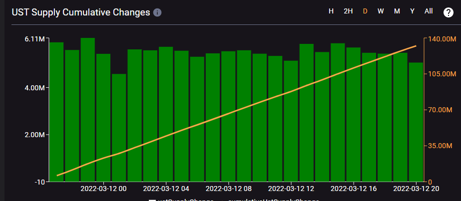 This will fluctuate with governance unlocks/burns/adjustments to $UST mint cap.