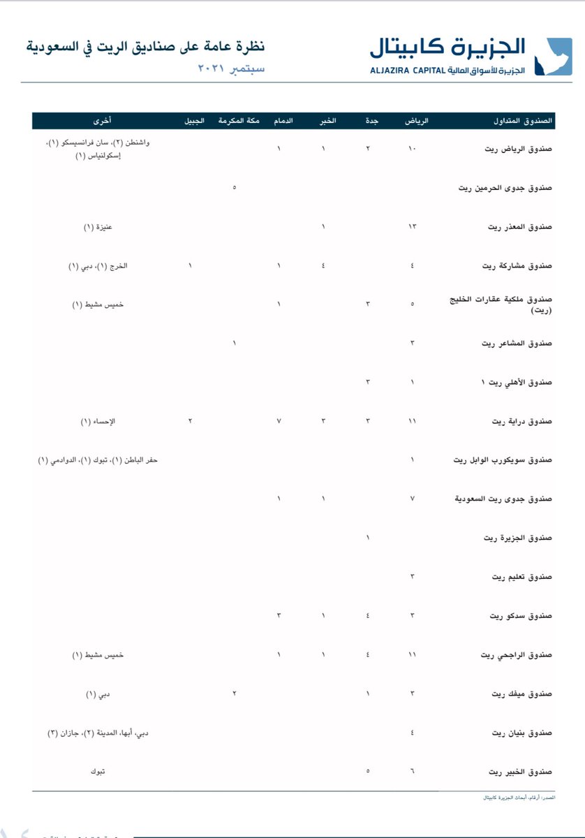 جدول يوضح لك التوزيعات لصناديق الريت