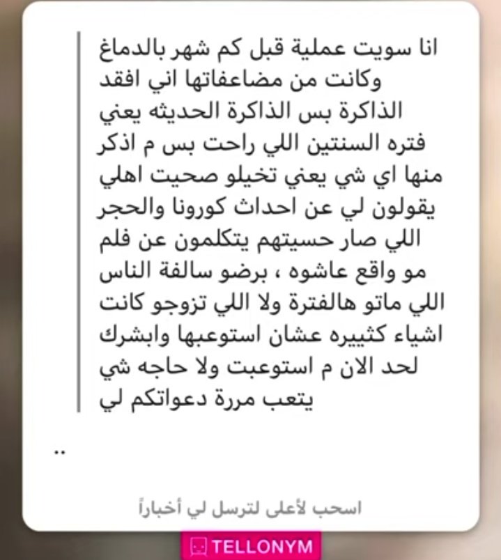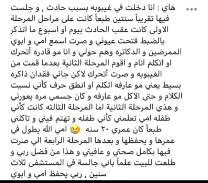 انتهى ثريدنا تاثرت جداااا وانا انقله لكم وتذكرت قصة جدي يوم جاته الغيبوبه قبل ما يتوفى كان اذا سمع اصوات امي وخالاتي تنزل دموعه يعني كان يستوعب صوتهم ويفهمهم للاسف احنا ماقدرنا نلحق نزوره قبل لا يتوفى كل ما اتذكر هالشي صدق قلبي يقطعني من الالم والحزن الله يرحمه
