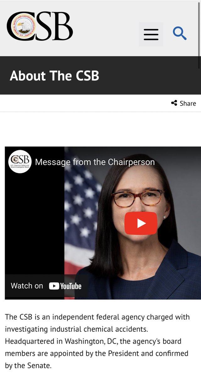3️⃣ أحد اهم المنظمات المميزة التي تساعدك بذلك هي مجلس السلامة الكيميائية ومجلس التحقيق في المخاطر (CSB) ، هي وكالة فيدرالية مستقلة تتيح لك تقارير للتحقيق في الحوادث مع التوصيات لمنع تكرار وقوعها بعد معرفة الاسباب الجذرية وغير المباشرة @chemsafetyboard