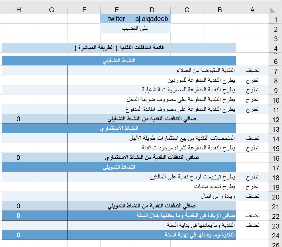 نموذج #اكسل قائمة التدفقات النقدية بالطريقة ( المباشرة والغير مباشرة )
