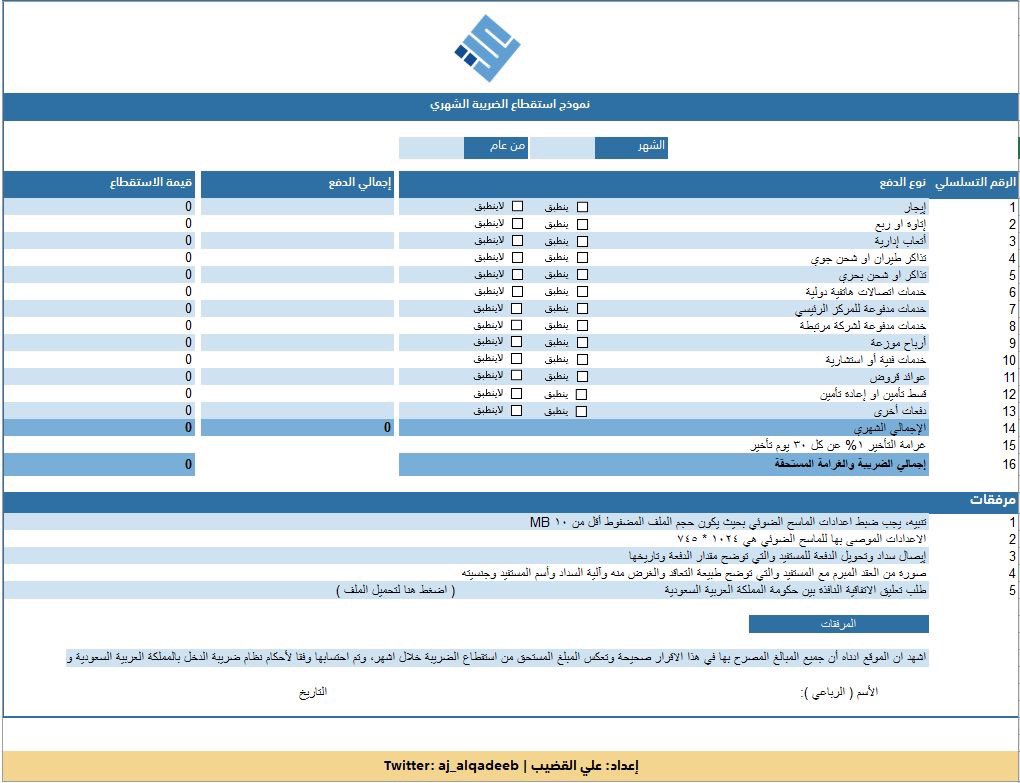 نموذج اكسل اقرار #ضريبة_الاستقطاع مشابه للإقرار الموجود في الموقع اثناء رفع الاقرار الضريبي