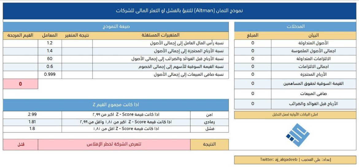 قالب بالإكسل نموذج #التمان (Altman) للتنبؤ بالفشل او التعثر المالي للشركات