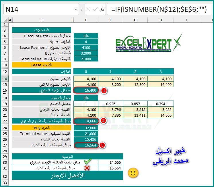 نموذج مالي مرن لحساب صافى القيمة الحالية للإيجار السنوي والشراء