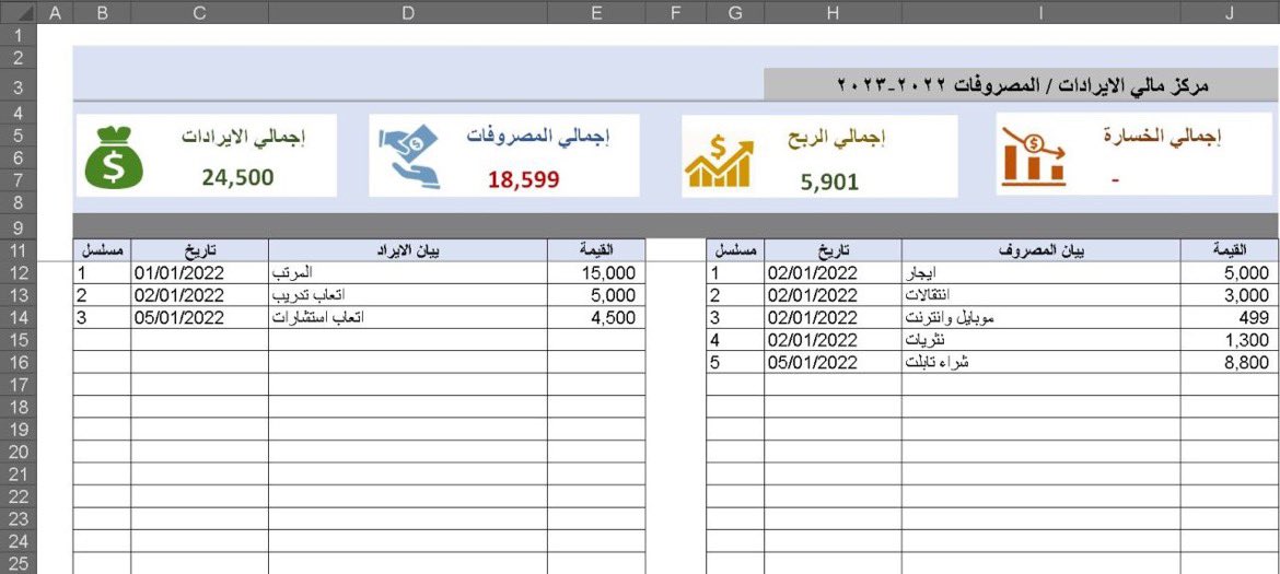 أداة باللغة العربية على برنامج الاكسل تساعد الشركات الناشئة والصغيرة لمن ليس لديه محاسب