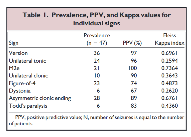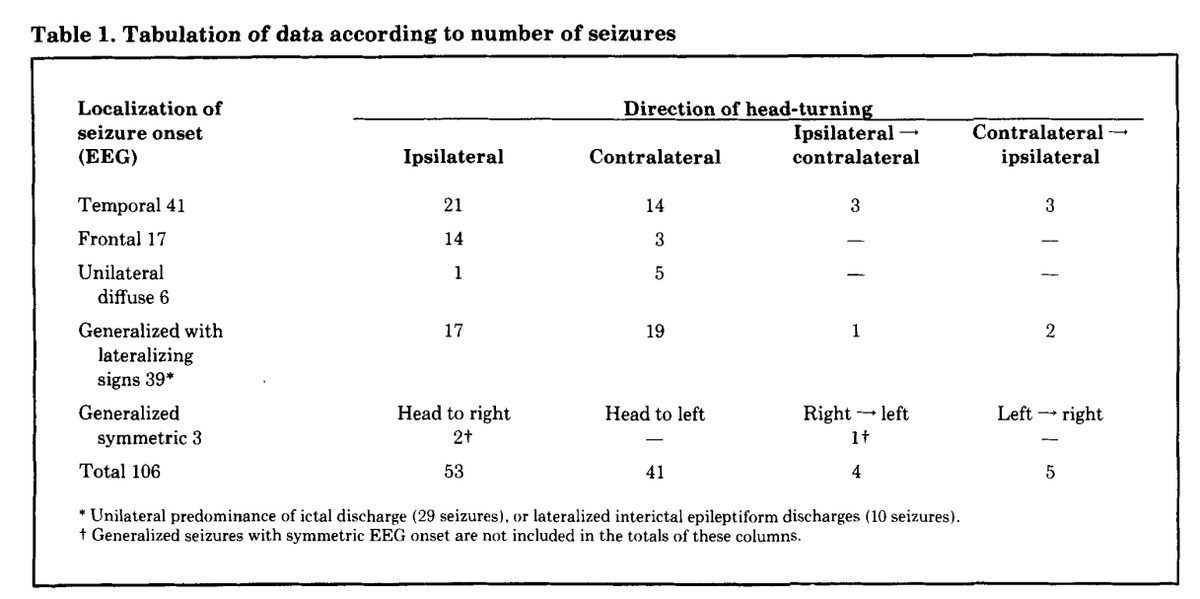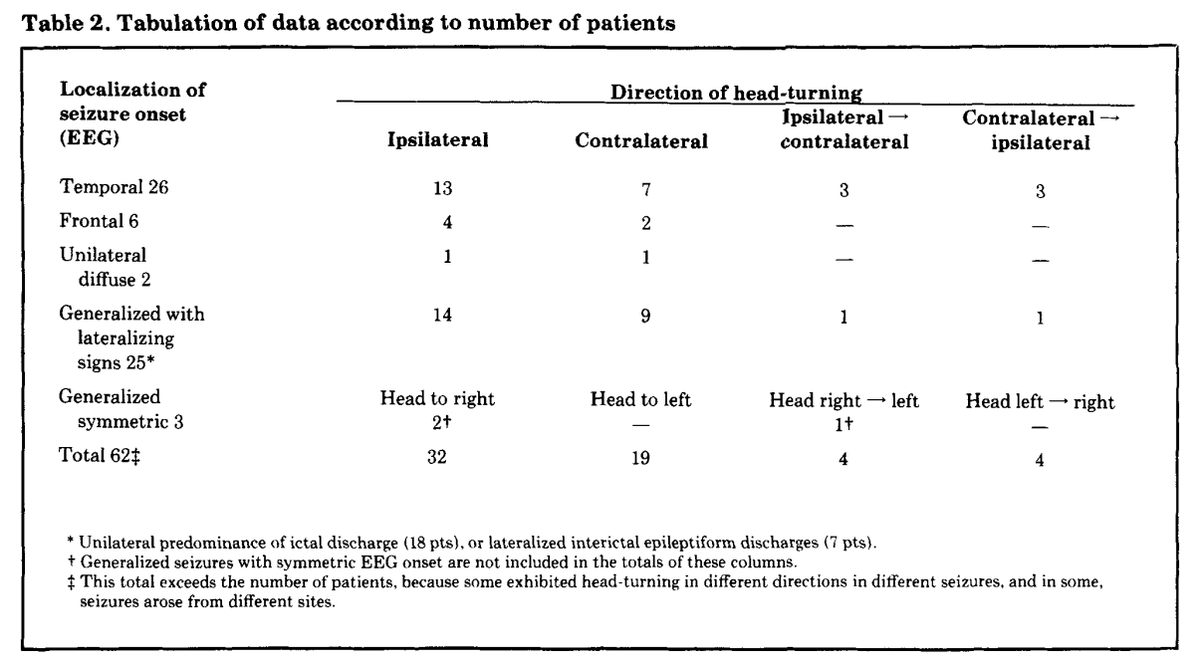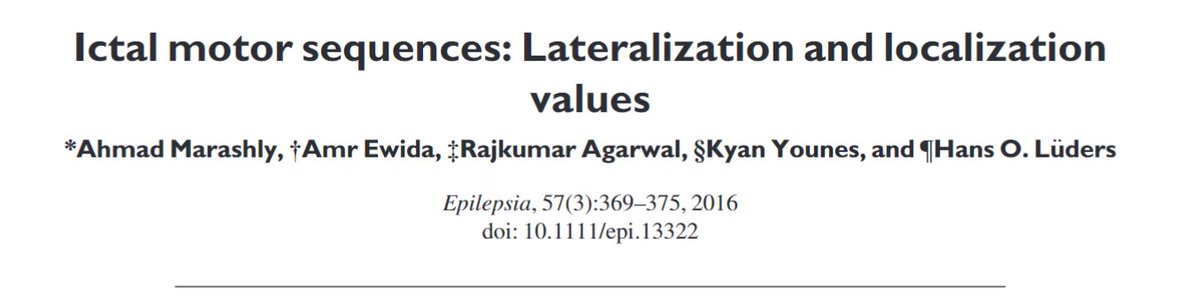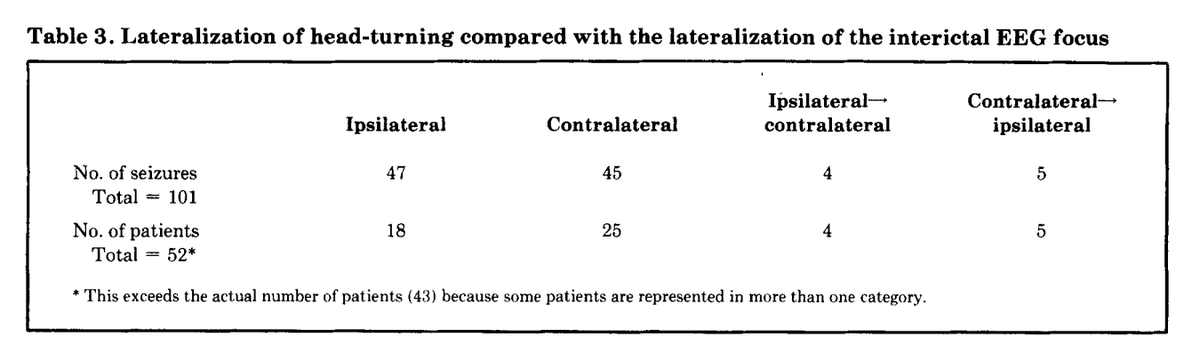 10/ Marashly, et al. also reported very high lateralizing significance for version in focal epilepsies ending with a secondarily generalized tonic-clonic seizure. #Epilepsy #Seizure #Neurology #NeuroTwitter