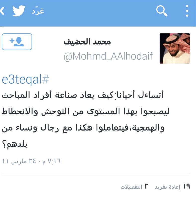 وبطبيعة الحال من المستحيل أن تجد أي من هؤلاء يذكرون رجال الدولة بالخير فلابد أن تجد #محمد_الحضيف ومنهم على شاكلته يقومون بالتحريض والتشكيك والتخوين والأدهى والأمر قيامهم بالكذب على ألسنتهم واتهامهم بأفعال لم يسبق لهم أن قاموا بها