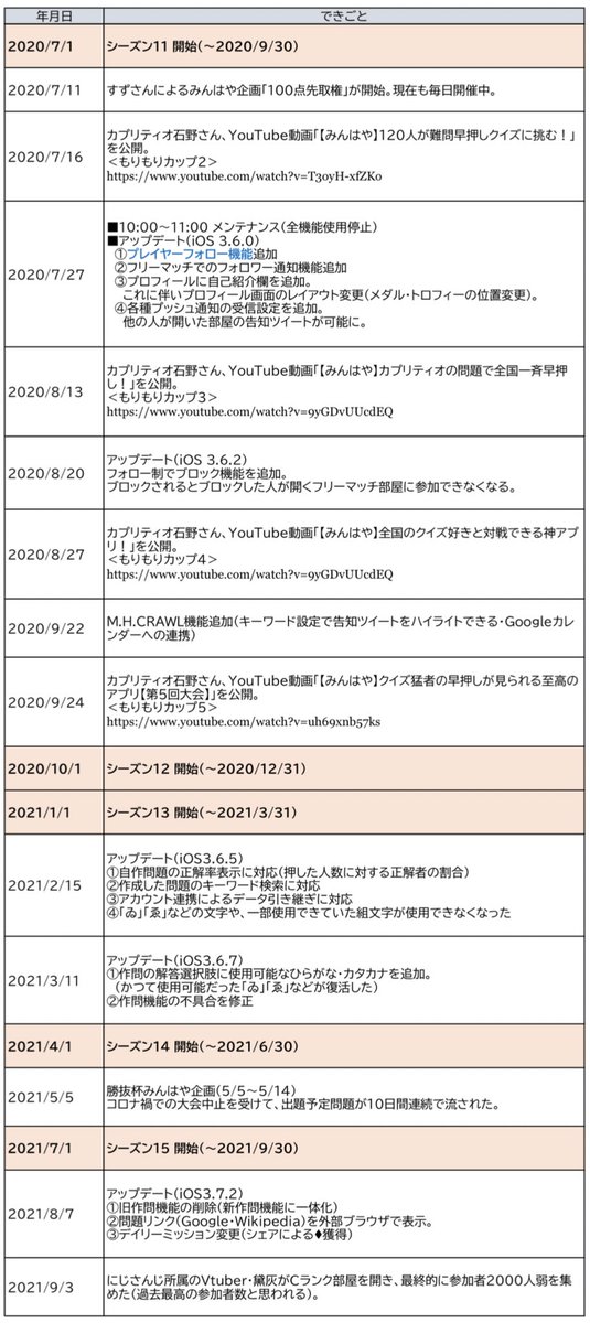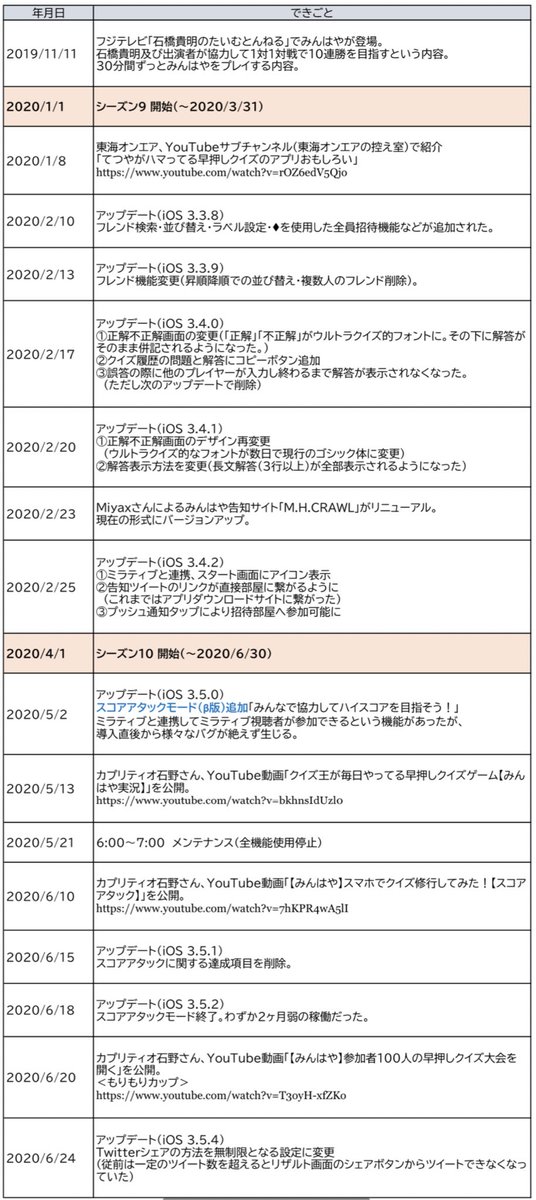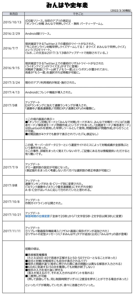 みんはやのリニューアル発表🎉を受けて、以前整理をした「みんはや史年表」を公開します。主に機能面の変化や話題になった企画などを中心にまとめました。これまでもこれからもみんはやは進化し続ける!全7ページ🙂
