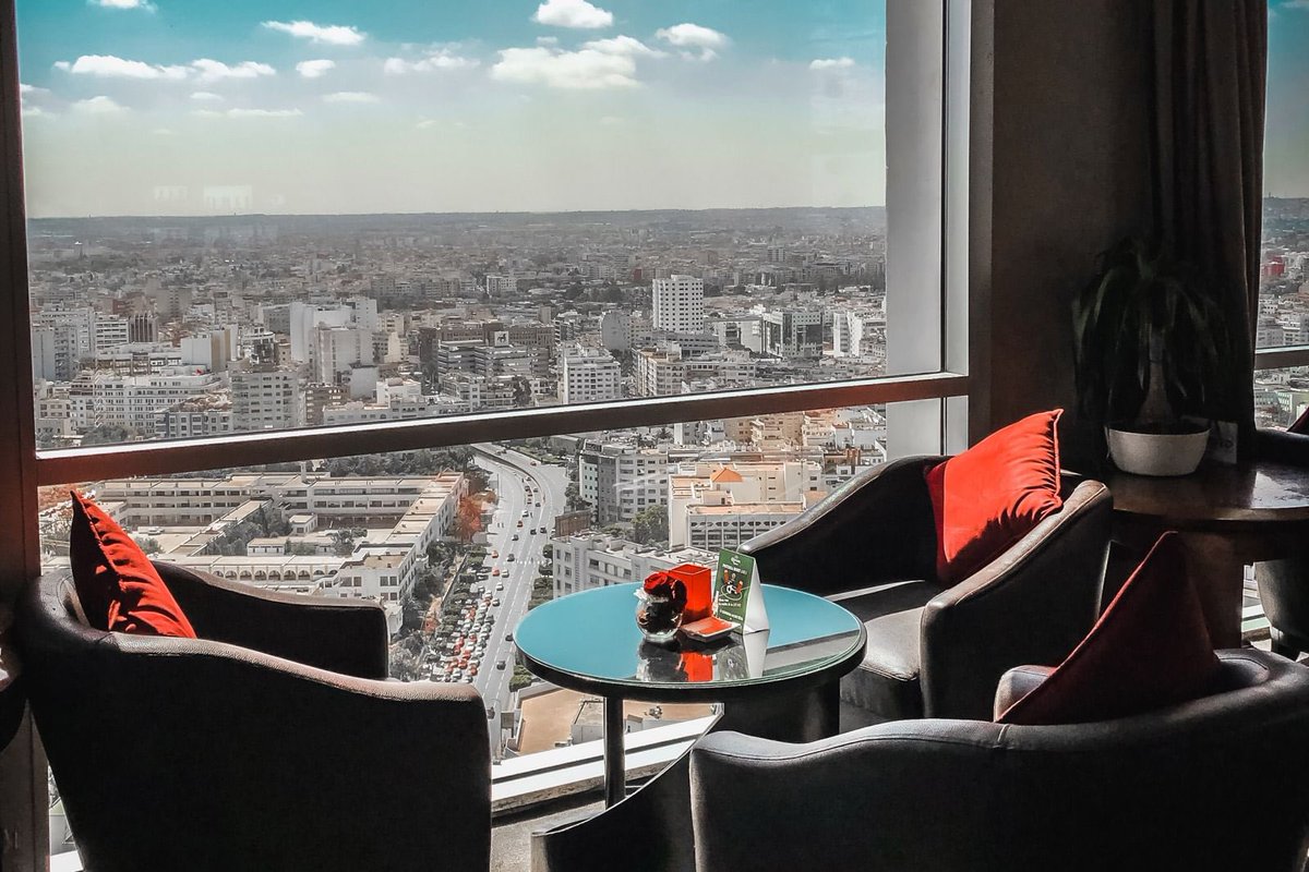 مطعم وبار يقع في الطابق 28 من فندق كينزي تاور أحد الفنادق في الدار البيضاء ، وهو يستحق الزيارة ، إذا كان ذلك مقابل المناظر الخلابة فقط. تطل على المدينة بأكملها ، مع نوافذ ممتدة من الأرض إلى السقف توفر إطلالة جميلة والأفضل زيارته قبيل الغروب
