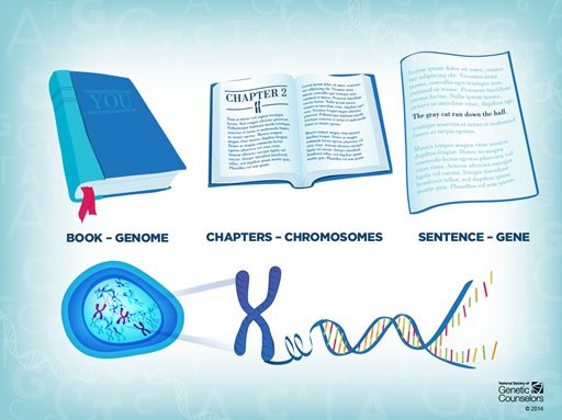 خامساً لفهم #الجينوم_البشري يمكن تشبيه بالكتاب كاملاً و الكرموسومات كأجزاء الكتاب و الجينات هي الجمل الموجودة بالكتاب،
