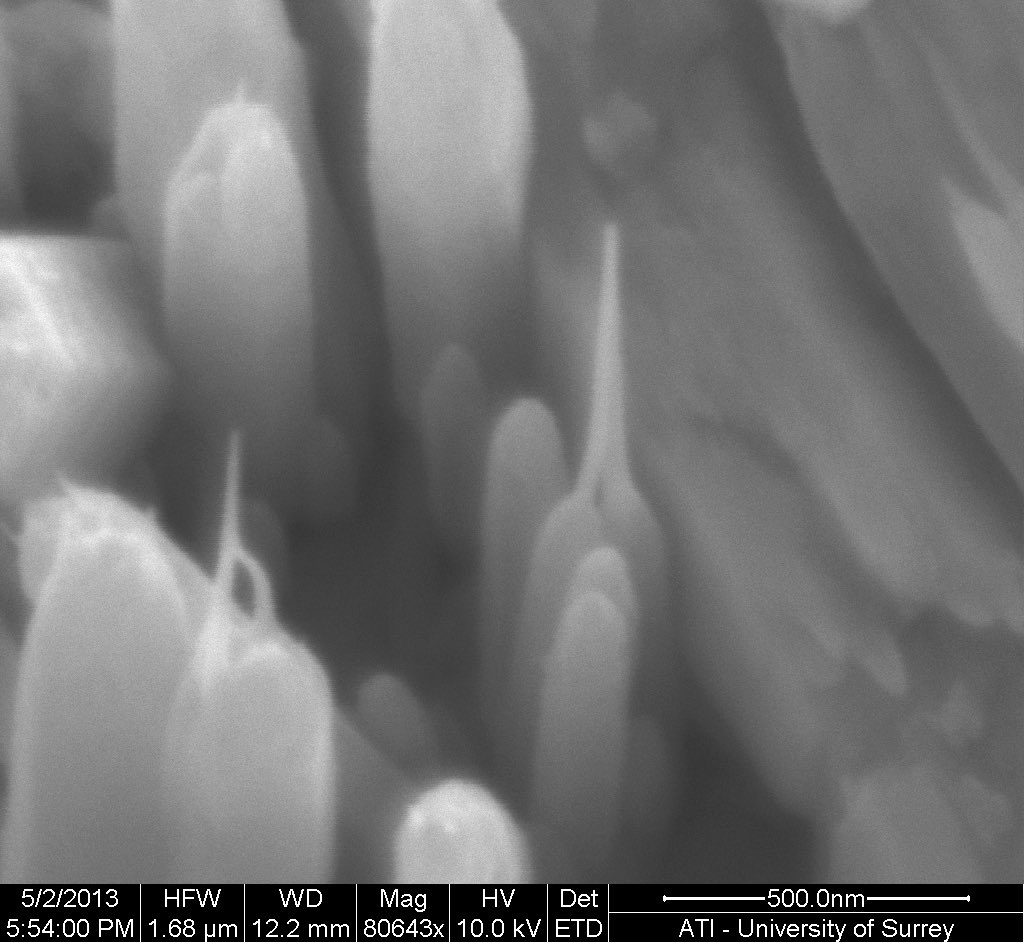 بعد تحضير الأجسام #النانو ية، نضعها بين أقطاب مجهرية لنكون جهاز نانوي باستخدام جهاز تحكم مجهري له إبر معدنية يجب أن تلامس الأقطاب بدقة