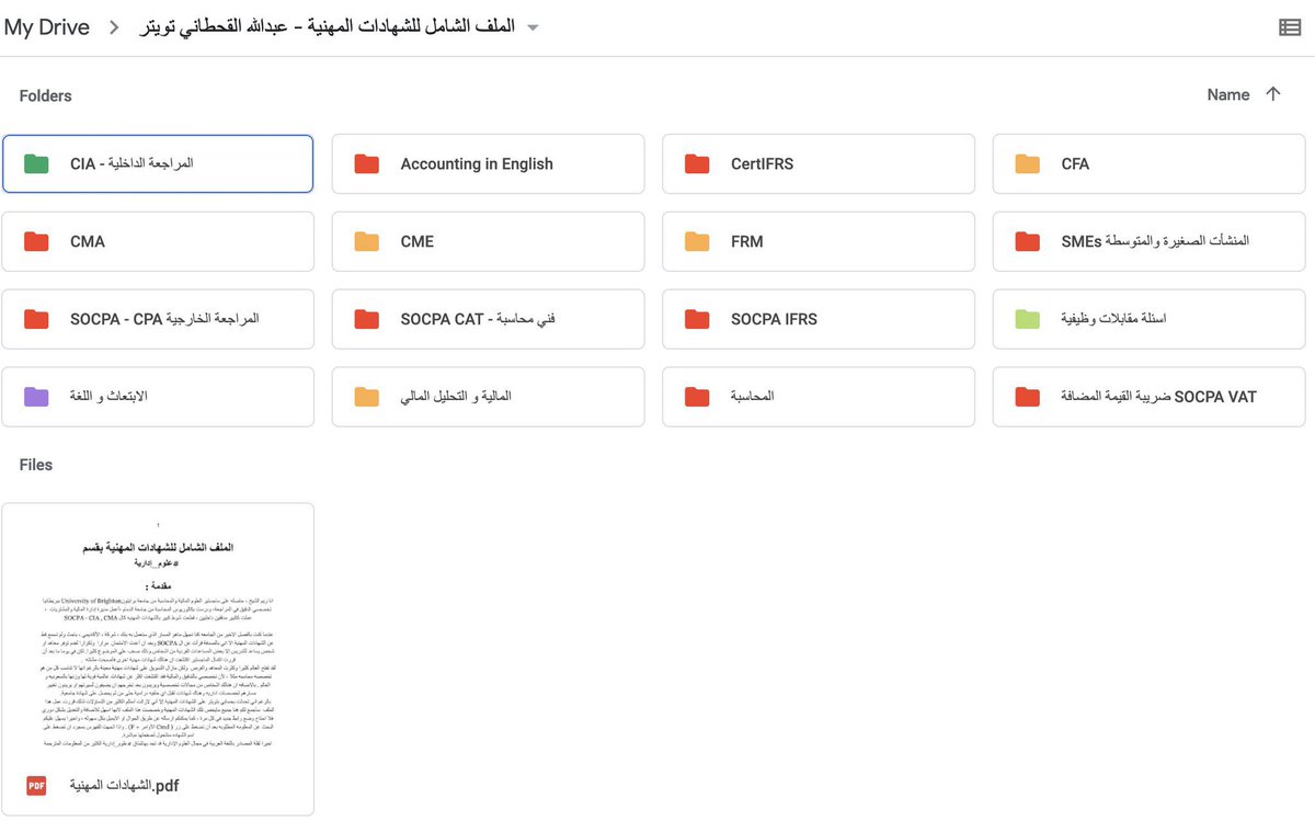لا تعتبر منهجاً رسمياً ، إنما ملفات مساعدة وتشمل #CPA #CMA #CFA #CIA #CME #IRFS #VAT #CAT