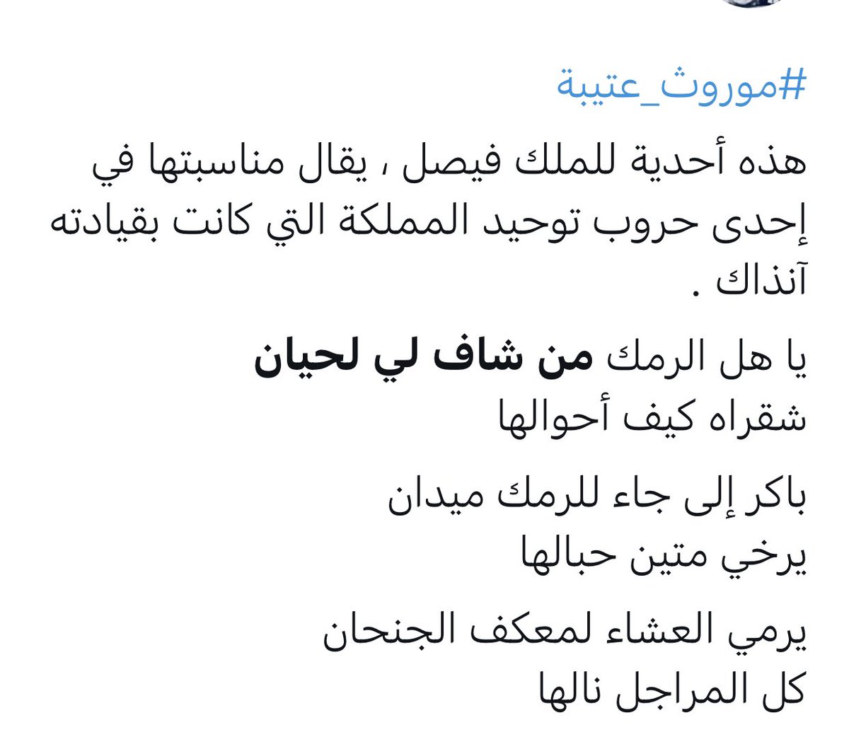 6️⃣ #دخيل_الله_بن_عون (لحيان) هو احد قادة جيوش الملك عبدالعزيز وقام بخفر الكثير من قبائل الجزيرة العربية إبان مرحلة التوحيد وفي فترة الفتنة آن ذاك، وهو الذي ذكره الملك فيصل في أحديته في إحدى معارك التوحيد