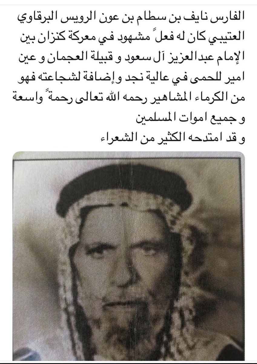 4️⃣ الحقيقة أن سلالة الفحول المنتجة من #سلالة_ابل_العونه_من_عتيبه تمتد إلى بعير #دخيل_الله_بن_عون #شرهان ودخيل الله بن عون المتوفي عام ١٣٨٧هـ هو أحد قادة جيوش الملك عبدالعزيز ، وابله الوضح يضرب بها المثل في وقتها.