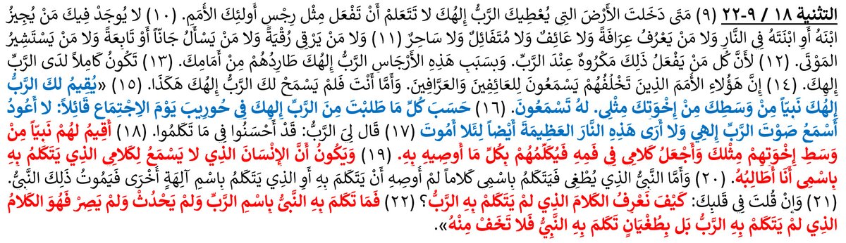 وسيكون بها إن شاء الله بشارة من الله تبارك وتعالى لنبيّه موسى عليه الصلاة والسلام وبني إسرائيل عن النبي محمد صلى الله عليه وسلم في التّوراة، في سفر التّثنية الإصحاح ١٨ العدد ١٨ :